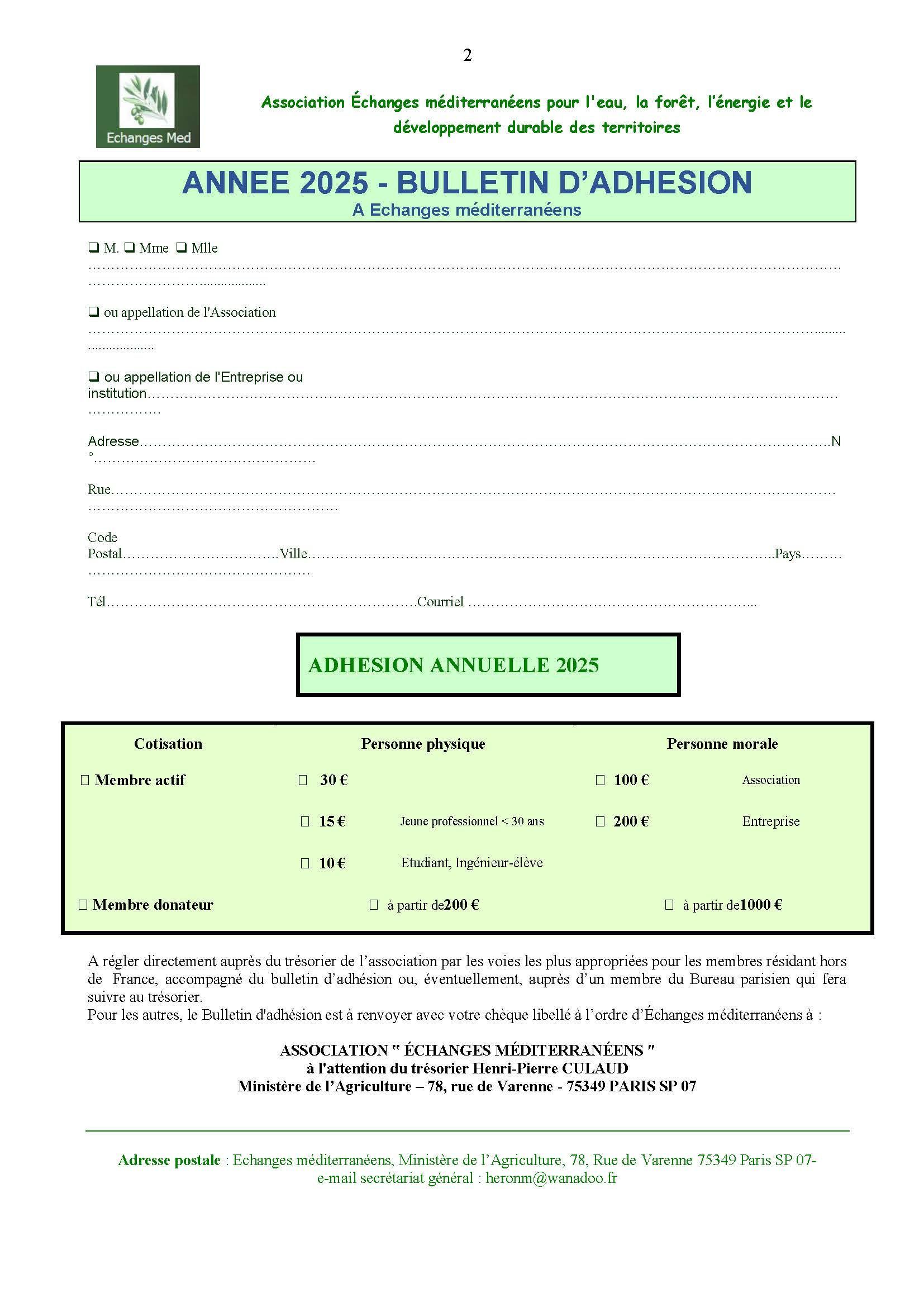 Télécharger la lettre et le Bulletin d'Adhésion 2025 à Echanges Med